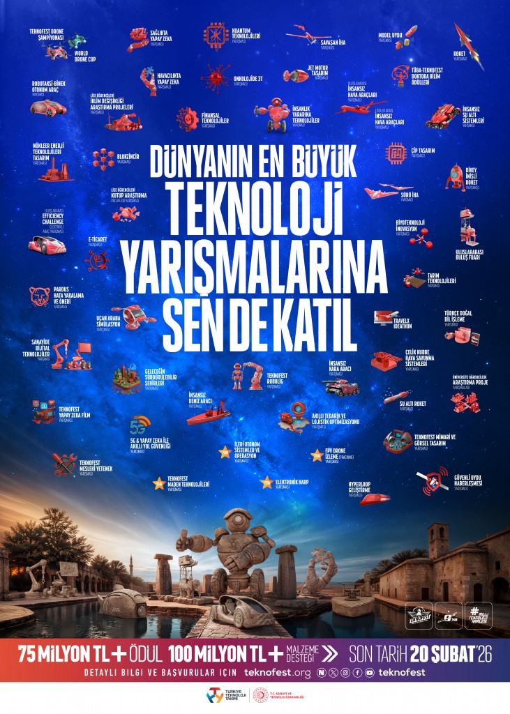 TEKNOFEST 2026 Teknoloji Yarışmaları Başvuruları Devam Ediyor!Dünyanın en büyük teknoloji yarışmalarına ev sahipliği yapan TEKNOFEST’te bu yıl 51 ana kategori 132 alt kategoride yarışmalar düzenlenecek