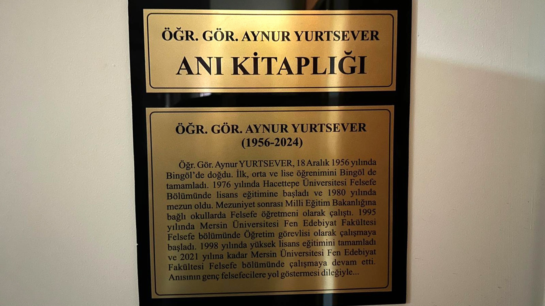 Üniversitemiz İnsan ve Toplum Bilimleri Fakültesi Felsefe Bölümü’nde 1995-2021 yılları arasında öğretim görevlisi olarak görev yapan ve 2024 yılında hayatını kaybeden Aynur Yurtsever anısına kurulan Aynur Yurtsever A