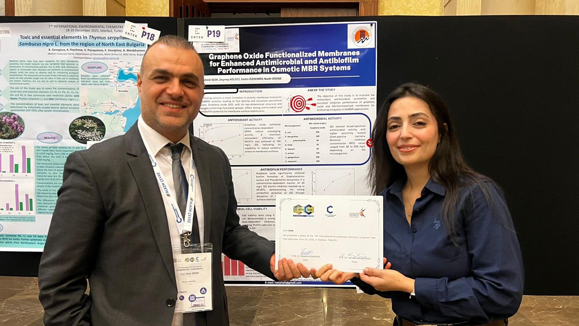 Bilim dünyasından farklı ülkelerden seçkin araştırmacıların katılımıyla 18–20 Aralık tarihleri arasında düzenlenen 7. Uluslararası Çevre Kimyası Kongresi’nde Üniversitem
