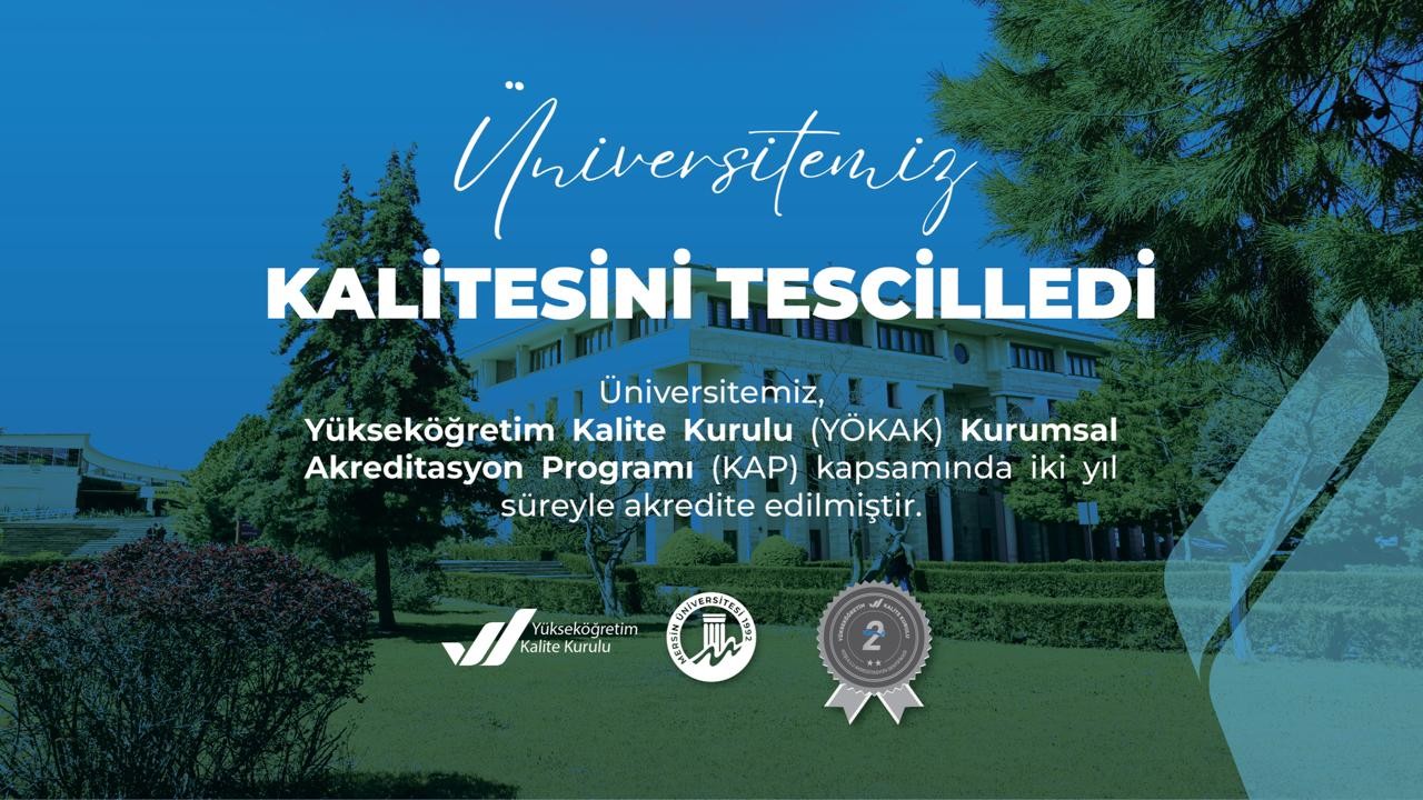 Üniversitemiz, Yükseköğretim Kalite Kurulu (YÖKAK) tarafından yürütülen Kurumsal Akreditasyon Programı (KAP) kapsamında yapılan kapsamlı değerlendirmeler sonucunda "Kurumsal Akreditasyon" belgesi almaya hak kazandı.