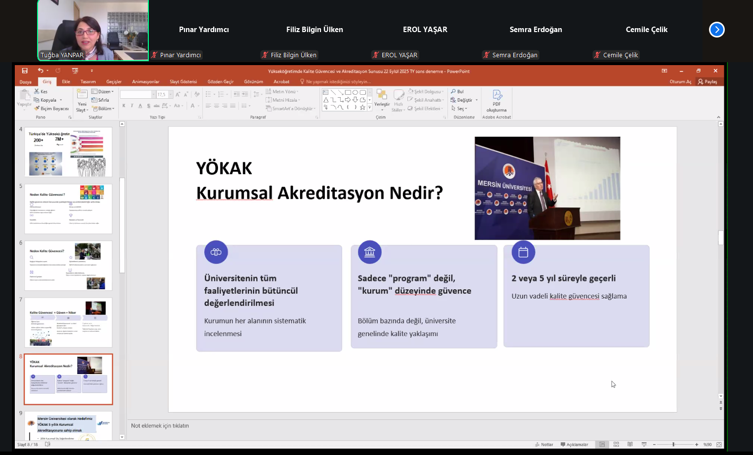 Üniversitemiz Rektör Danışmanı Prof. Dr. Tuğba Yanpar da seminer kapsamında yükseköğretimde kalite güvencesi ve kurumsal akreditasyon süreçleriyle ilgili bilgilendirme gerçekleştirdi.